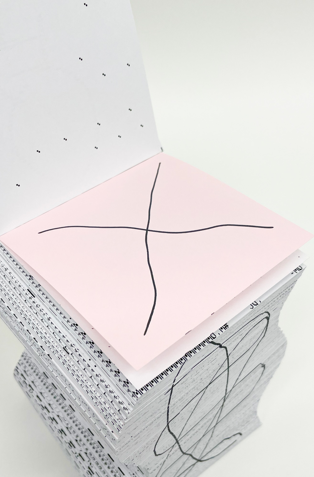 伸縮性のある糊で製本されているため、左右にひねって形を変えることができる。